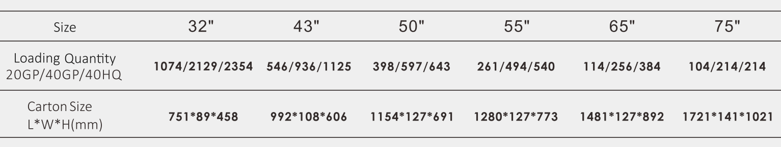 ·  Size: 32"/43"/50"/55"/65"/75"